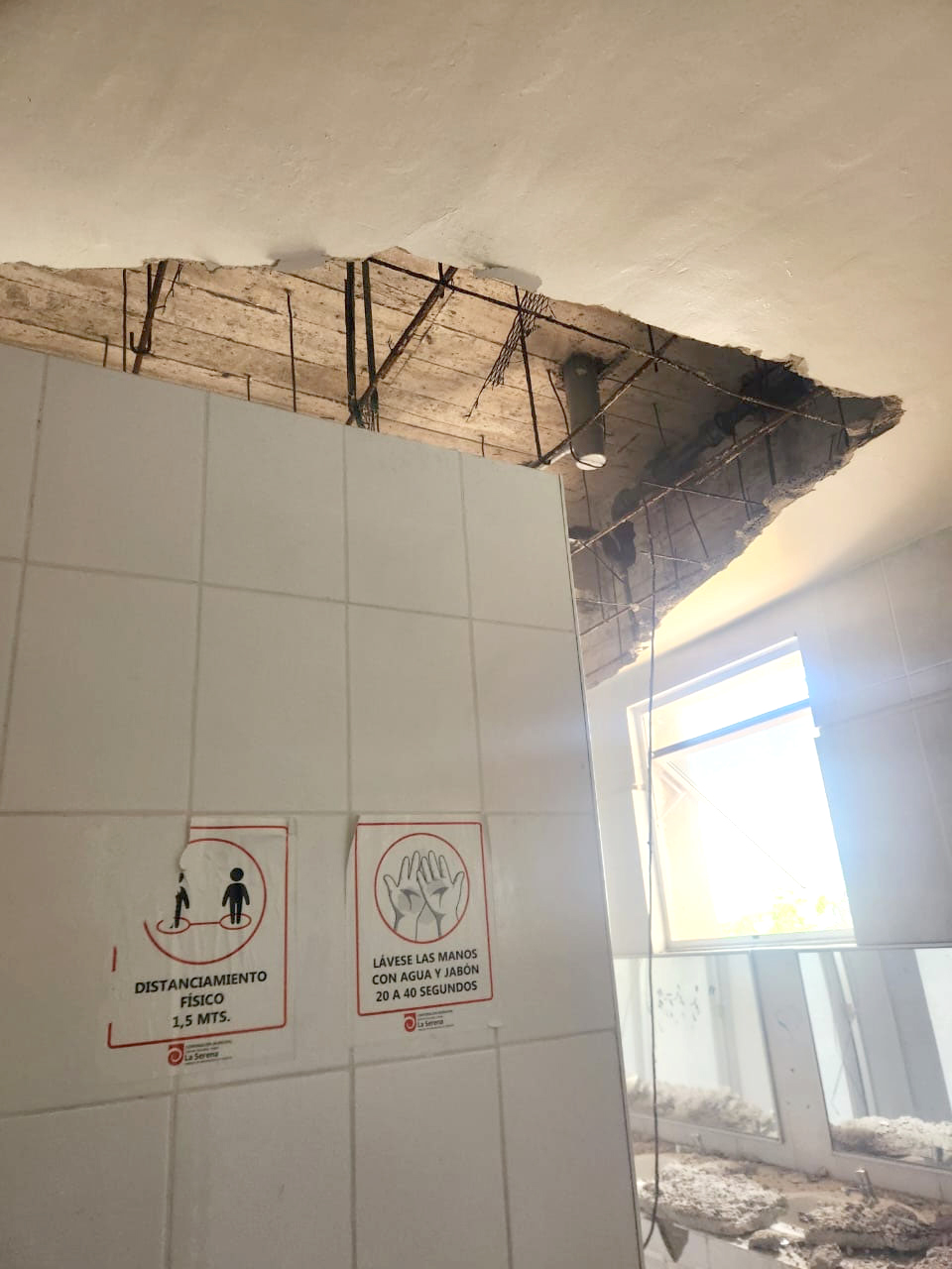 Un derrumbe de parte del techo en uno de los baños del Liceo Gabriela Mistral de La Serena —establecimiento que además será local de votación para el proceso electoral de este domingo— generó preocupación este jueves por la tarde, luego de que dos estudiantes que se encontraban en el lugar lograran salir al escuchar el ruido previo a la caída.