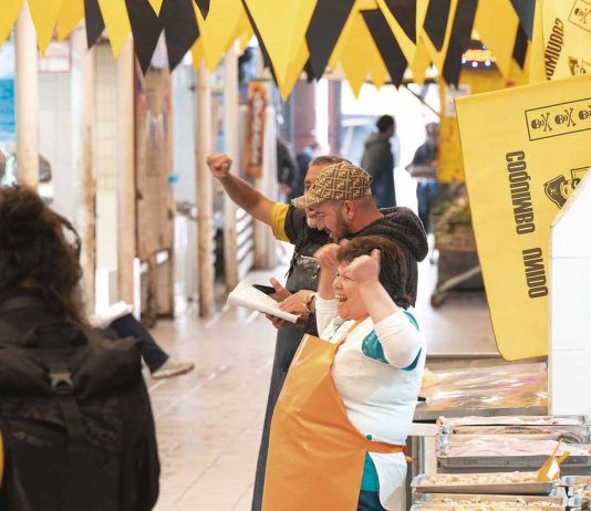 Dedito para arriba en el terminal pesquero para que el barbón baje la ansiada estrella