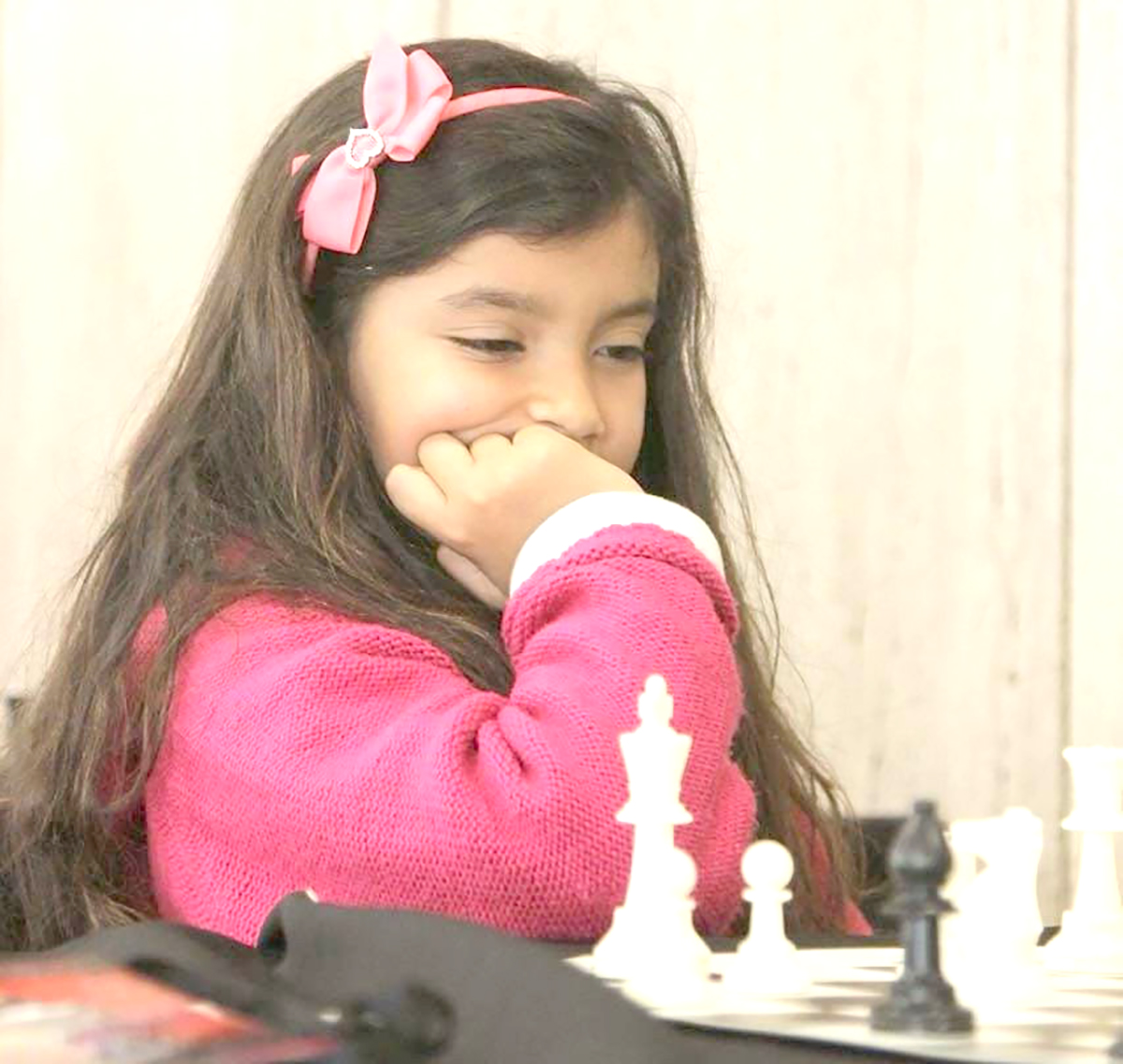 «Donde vivimos, en la casa de al lado vive su abuelo, que también fue un destacado ajedrecista en su época y el hermano fue noveno en Sudamérica, entonces ella durante cuatro años y medio se ponía a mirar al lado como jugaban y le enseñaron a mover las piezas y a jugar» señaló el padre de la menor.