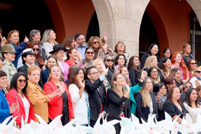 El frontis del edificio del Gobierno Regional no amaneció como cualquier otro día. En el marco de la conmemoración del Día Internacional de la Mujer, el espacio se transformó en una instancia participativa titulada «Las mujeres somos movimiento que transforma», invitando a autoridades y transeúntes a ser parte activa de un diálogo visual por la equidad.