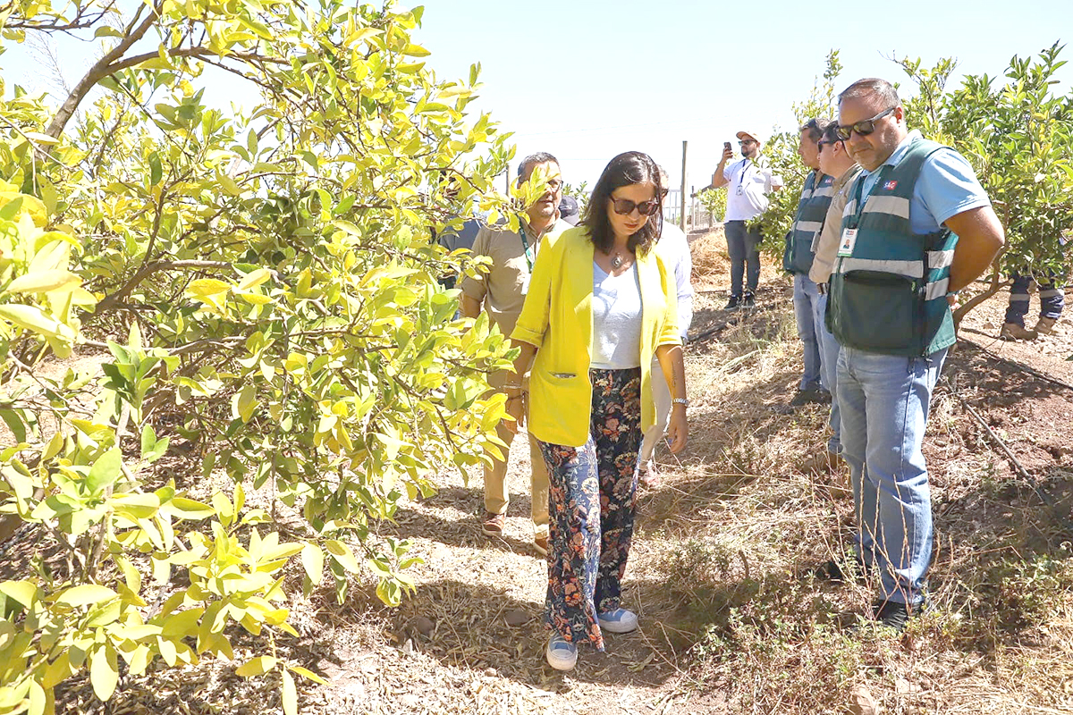 Justamente la secretaria de Estado recorrió un predio donde se detectó un caso de plaga, observando en terreno las labores de control, vigilancia, descarga y desinfección, en una región estratégica para la producción agrícola y exportadora del país.