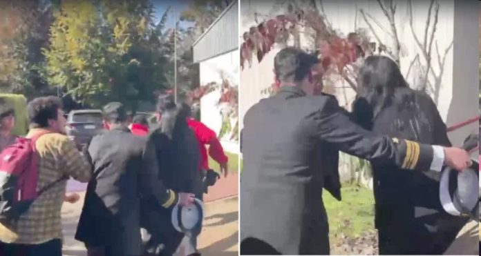 Fue en ese contexto que, escoltada por su equipo de seguridad y asesores, Lincolao inició su desplazamiento hacia el vehículo oficial. Sin embargo, en el trayecto fue increpada por un grupo de estudiantes, quienes le gritaron consignas e insultos, además de propinarle empujones en medio del tumulto.