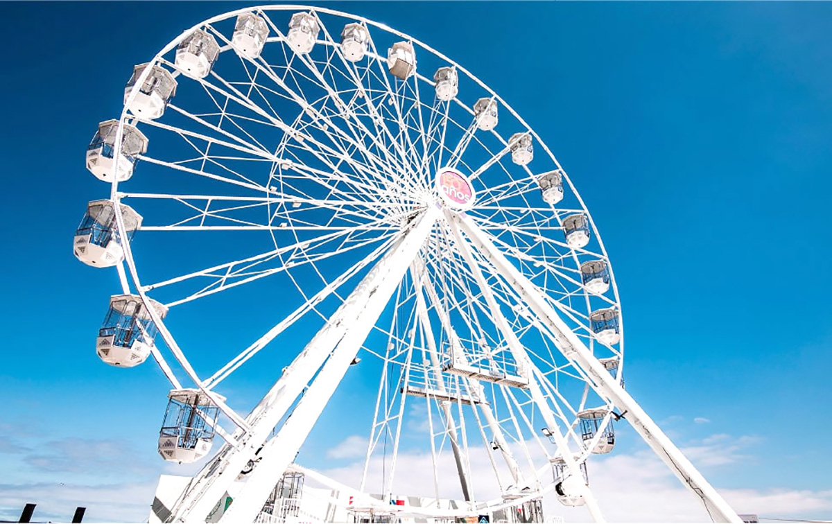 La estructura, que alcanza los 30 metros de altura y cuenta con 24 cabinas cerradas —cada una con capacidad para seis personas, incluyendo accesibilidad universal— estará ubicada en la Plaza Escultura Gabriela Mistral, frente al acceso principal del parque Pedro de Valdivia. Las entradas ya están disponibles a través de Puntoticket, con valores desde $5.000 por persona y hasta $25.000 por una cabina completa.