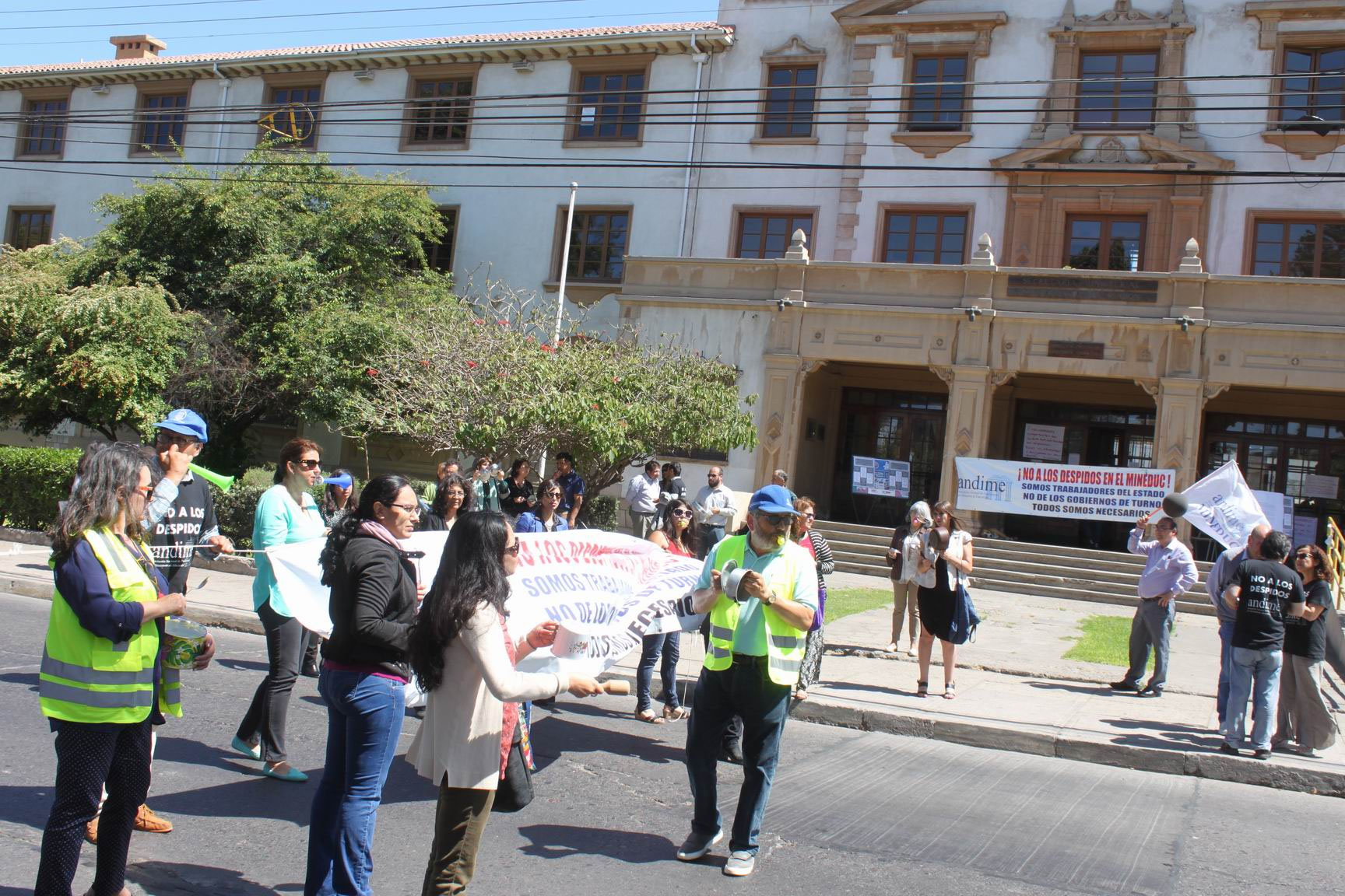 Durante la mañana del jueves una treintena de funcionarios realizaron un «cacerolazo» en el frontis de la Secreduc, en donde a ratos cortaban el tránsito, para hacer sentir su malestar por la situación de los 11 trabajadores que fueron desvinculados.
