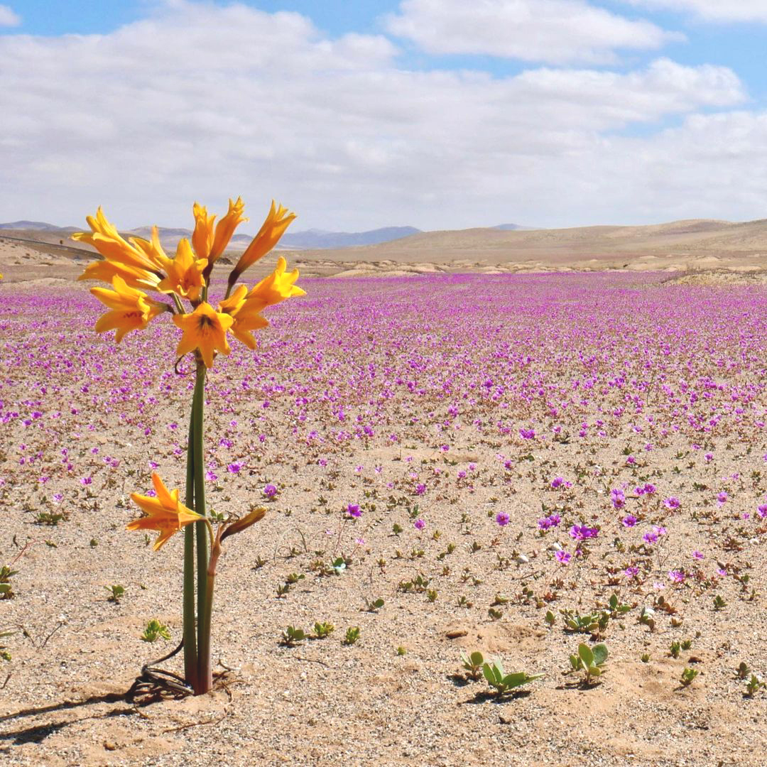 En el Desierto de Atacama ocurre un fenómeno único en el mundo, cuando las lluvias hacen brotar flores de la arena, de cientos de especies distintas y casi todas endémicas de Chile. Para proteger algunas zonas costeras de Coquimbo y Atacama donde la floración ocurre con más fuerza, se creó el Parque Nacional Desierto Florido.